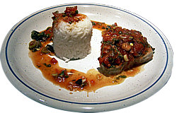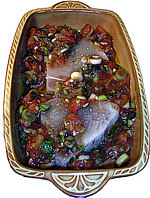 Frühlingszwiebeln in Ringe und Knoblauch in feine Würfel schneiden, Karpern abgießen. |