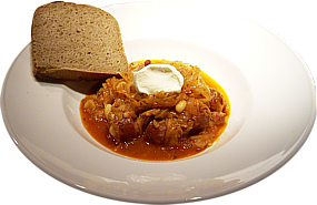 Mit einem einem Schlag Schmand auf dem Teller anrichten, eine Scheibe Graubrot dazulegen und sofort servieren.